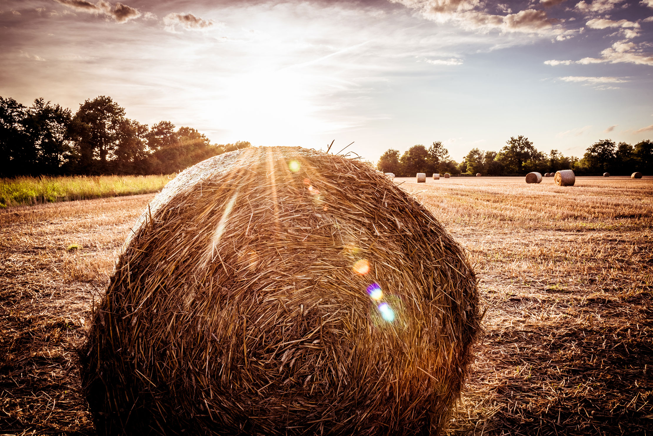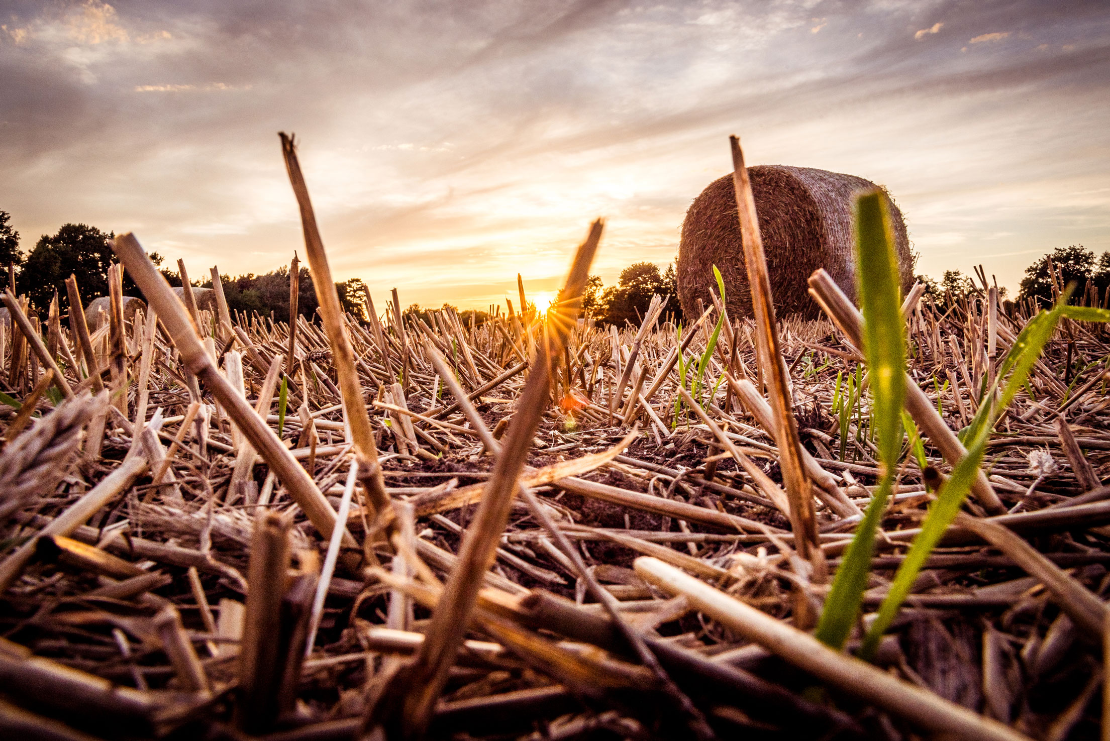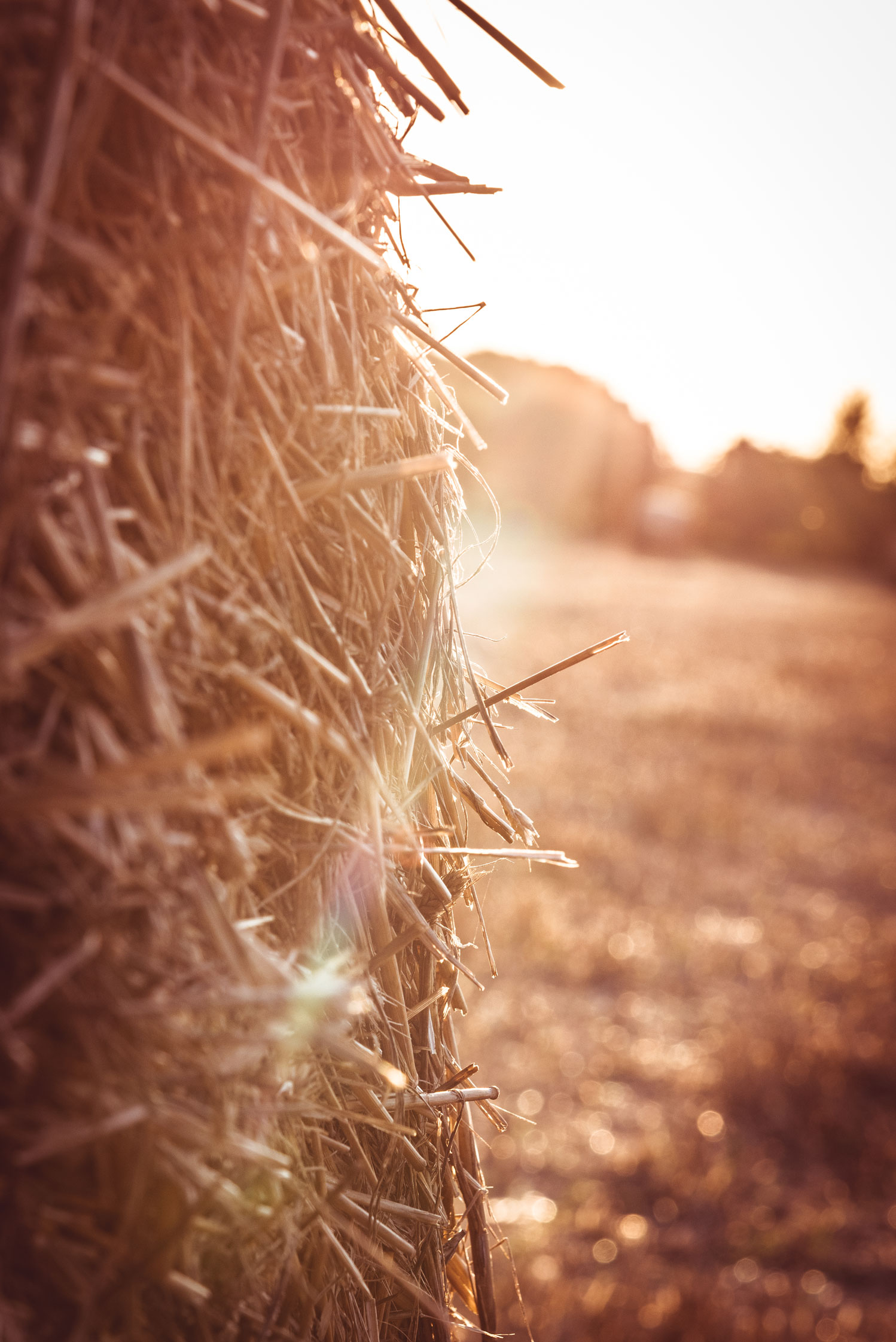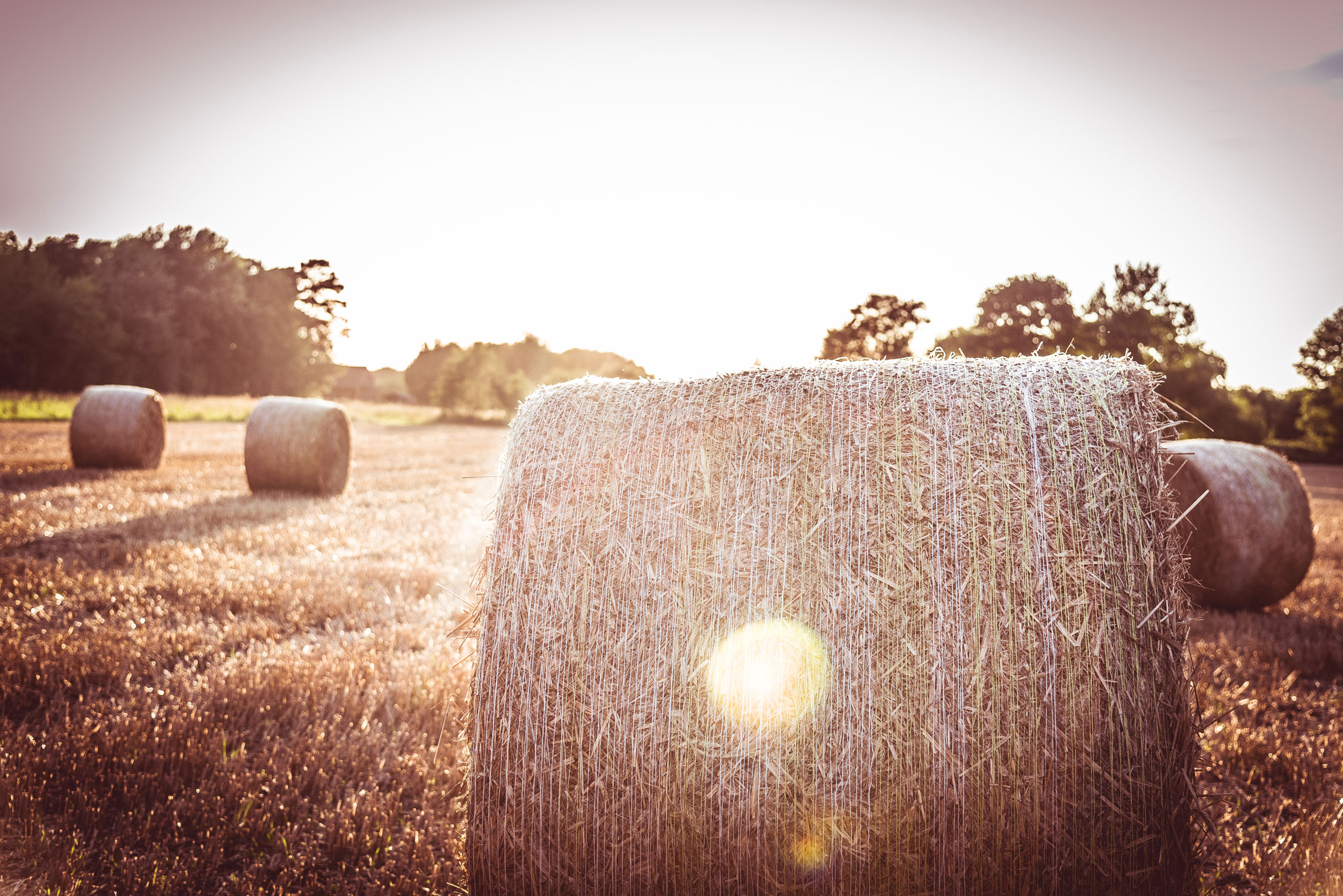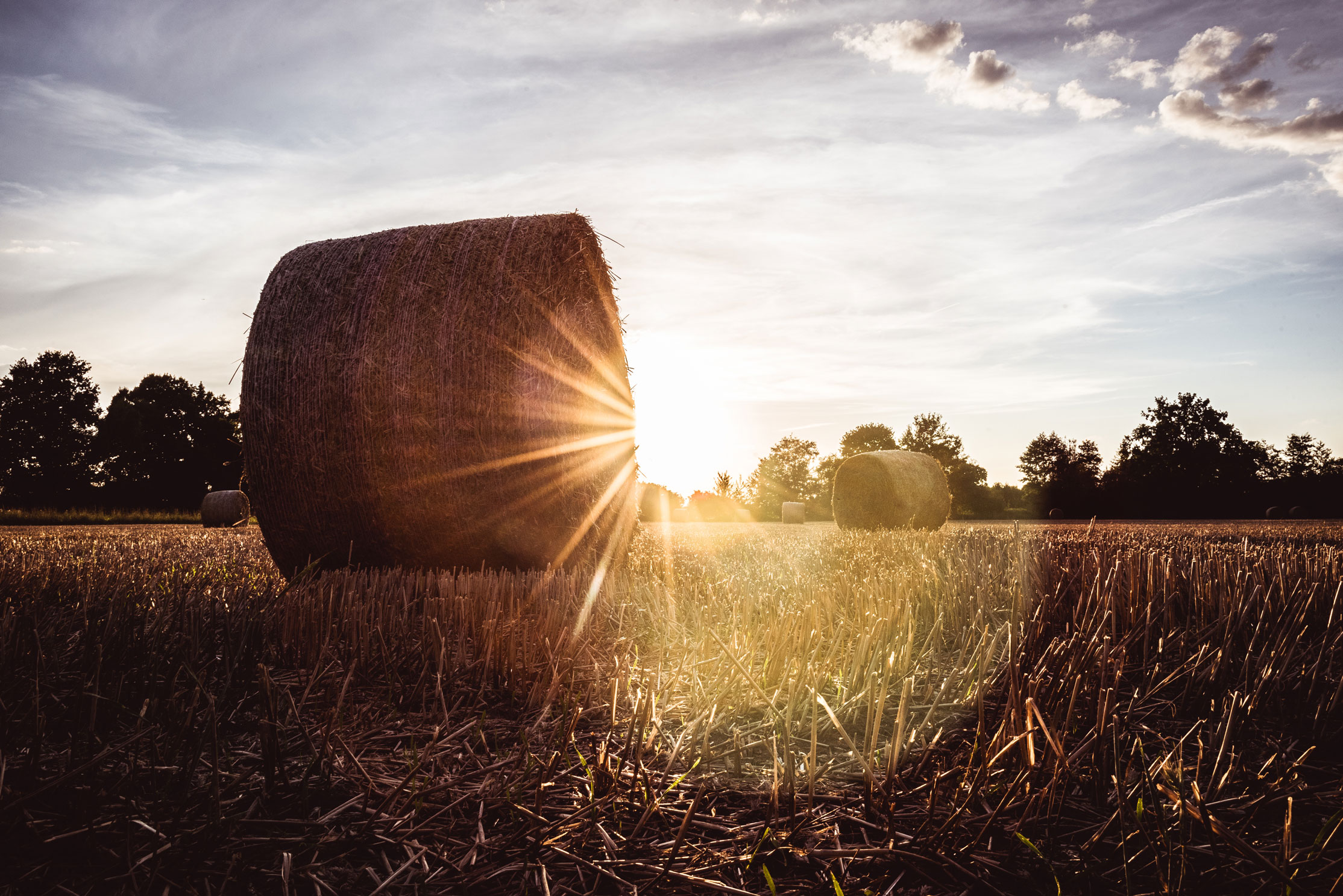 Nach einem tollen Tag mit einer guten Freundin ging am Abend wieder wundervoll die Sonne tiefer. Wie ich Euch bereits im ersten Blogeintrag erzählt habe, war das Wetter in meinem Urlaub in der Heimat insgesamt sehr durchwachsen und gab es insgesamt nur vielleicht drei Abende, an denen die tiefergehende Sonne ihr wunderschönes warmes Licht auf die Natur niederließ. So nutzte ich auch diesen Abend, packte meine Kamera ein und zog los. Wieder zu Fuß, wieder einfach unsere Straße entlang. Diesmal aber mit einem Ziel: das Kornfeld mit den vielen großen Strohballen ganz in der Nähe.