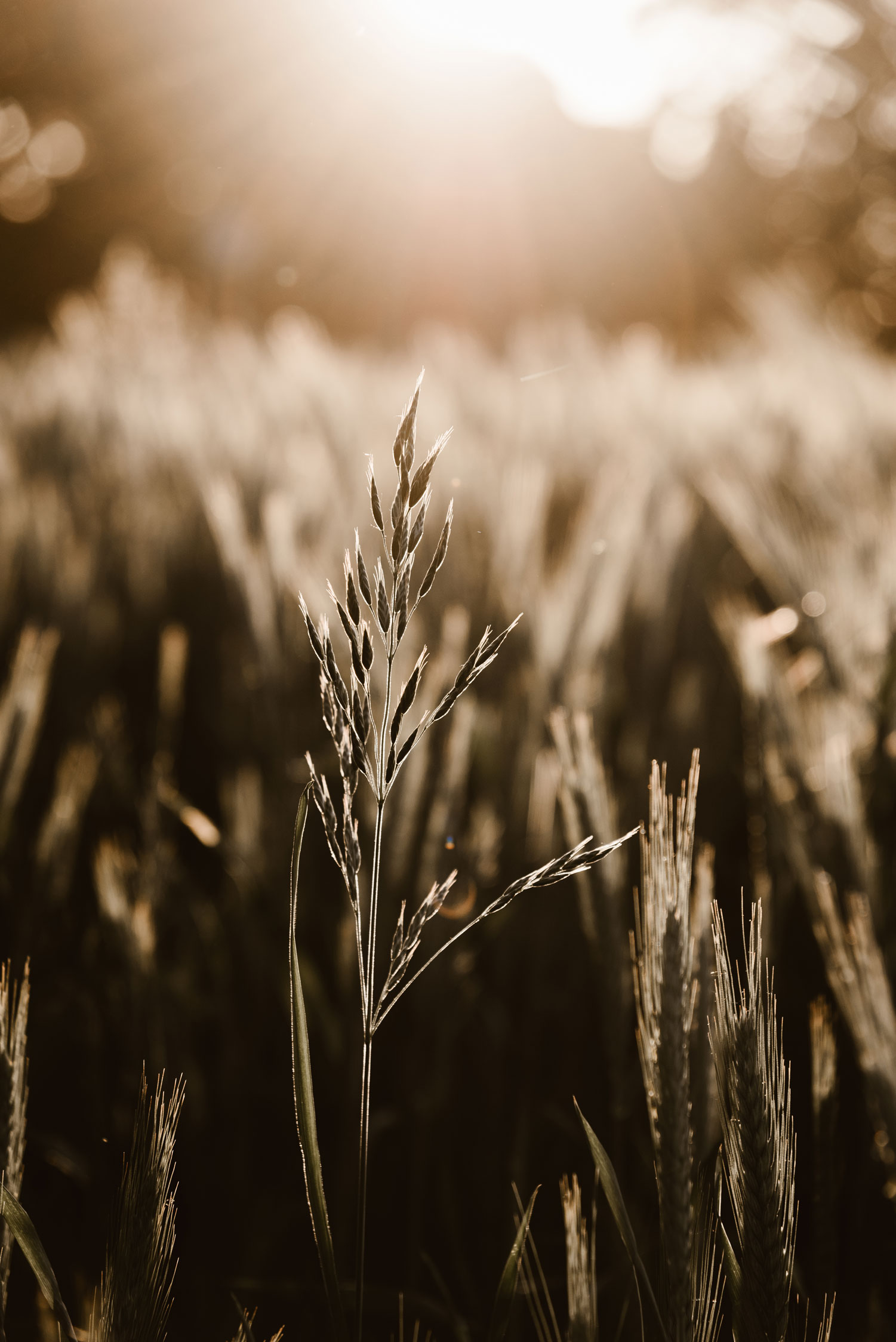 Am Sonntag gab es den ganzen Tag fast kein Wölkchen am Himmel. Irgendwie hatte ich gar nicht so richtig dran gedacht, dass es mit der Abendsonne etwas werden könnte. Aber dann, kurz vor dem Abendessen sah ich wie die Sonne schon recht gut auf das Kornfeld schräg gegenüber schien. Also schnell aufgefuttert, Kamera geschnappt und raus. Einige von Euch werden wissen, wie sehr ich die Abendsonne und das mit ihr leuchtende Gegenlicht für die Fotografie liebe. Jedes Mal, wenn ich in der Heimat bin und gen Abend die Sonne scheint, halte ich Ausschau, ob es mit einem tollen Sonnenuntergang klappen kann. Ich warte auf das „perfekte“ Gegenlicht. Perfekt, das ist hier eigentlich das falsche Wort. Gibt es das „perfekte Licht“ überhaupt? Jeder Fotograf, jeder Mensch wird diesen Begriff anders definieren. Vielleicht ist es einfach „mein“ Licht, oder „mein perfektes Licht“. Es bleibt dann die Frage, was man daraus macht. Aber, selbst wenn in diesem wundervollen Abendlicht keine „perfekten“ Fotos entstehen, so macht mich der Moment, da mit meiner Kamera in der stillen Natur mitten in der Wiese zu stehen und den Sonnenuntergang anzuschauen und zu fotografieren, so unheimlich glücklich. Es erfüllt mich und in Momenten wie diesen bin ich ganz bei mir, ganz in dem Moment. Ich schalte ab, konzentriere mich voll und ganz auf die Kamera und das vor mir liegende Motiv. Ich vergesse alles andere drumherum. Und das ist genau das, was die Fotografie für mich so wichtig macht. Sie ist ein Ventil und für mich ganz persönlich die Möglichkeit, den Alltag mal Alltag sein zu lassen. ♥